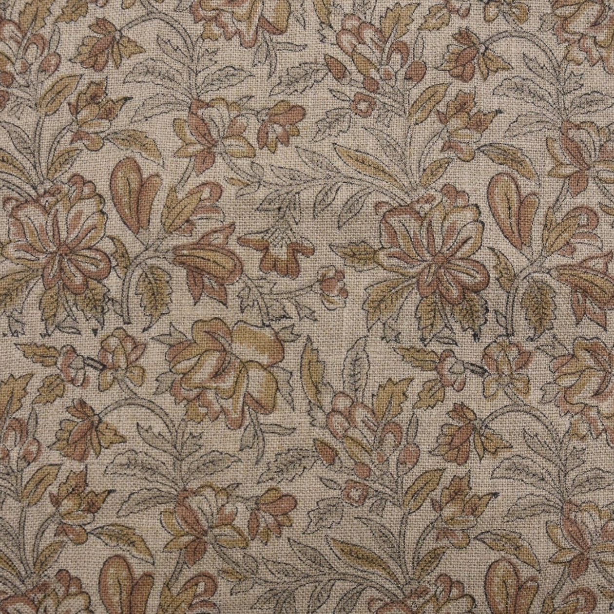 Handsewn floral block print linen blend napkin.