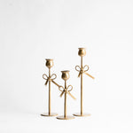 Hand-forged iron taper holder with bow in antique gold finish. Sold individually.