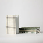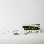 Hardcover fabric journal with bookmark ribbon. 172 lined pages.